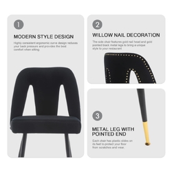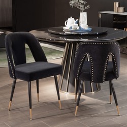AADEN 2x Velvet Dining chairs with Metal Legs-Black