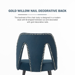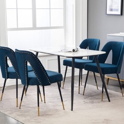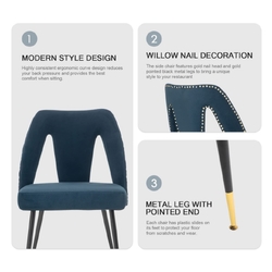 AADEN 2x Velvet Dining chairs with Metal Legs-Blue
