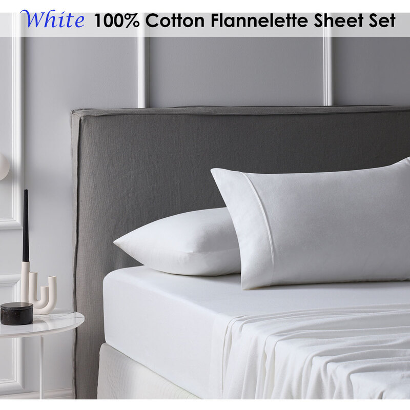 The Cotton Flannelette Sheet Set White by Accessorize is the perfect choice for cold winter nights. Made from 100% cotton our flannelette sheets will keep you warm all through winter. We have a range of beautiful patterns including floral, stripes, geometric or plain solid colours which will be a lovely addition to your bedroom. Approx 140gsm.
