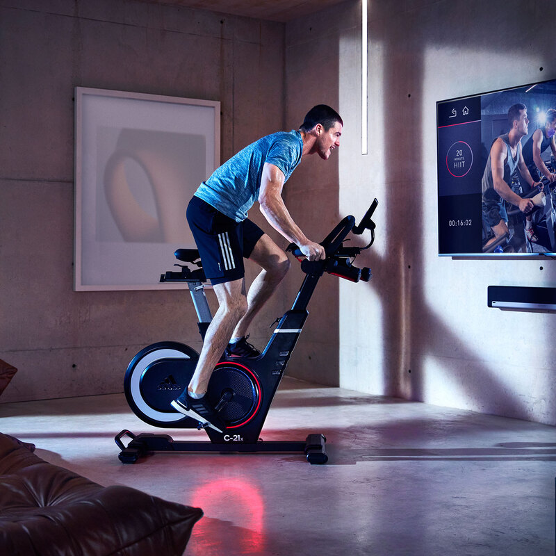 Built to deliver the optimum indoor cycling experience, the C-21x features a solid 16 kg flywheel and 8 levels of resistance the C-21 is ideal for steady-state and interval training. Complete your ride anywhere with the self-generating motor eliminating the need for a power outlet and transport wheels to conveniently store your bike in between uses. The signature adidas Ultra Series red LED lighting powers up when you create energy, encouraging riders to maintain momentum and test their limits.
