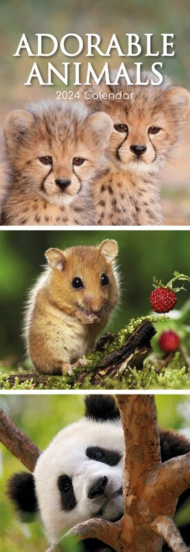 Adorable Animals 2024 Slimline Slim Wall Calendar Hanging Planner New Year Gift
