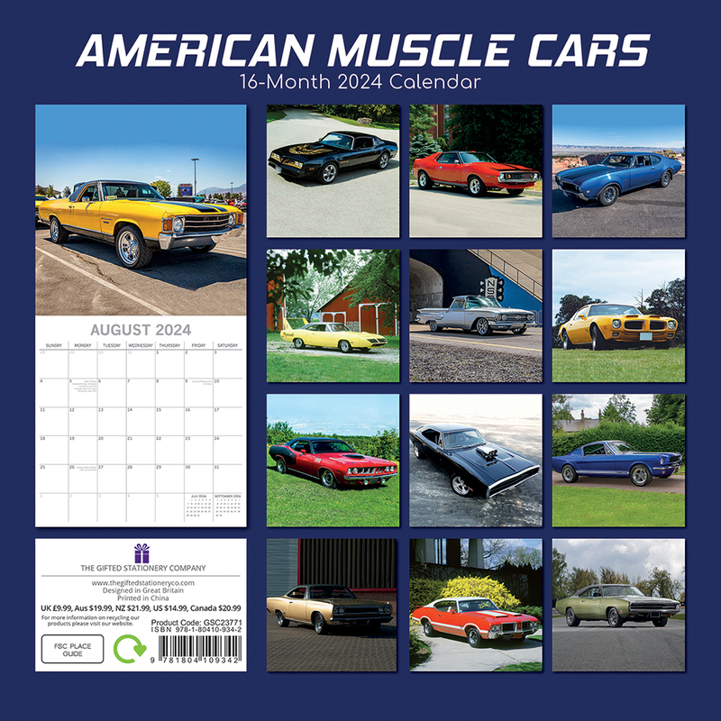 American Muscle Cars - 2024 Square Wall Calendar 16 Months Planner New Year Gift