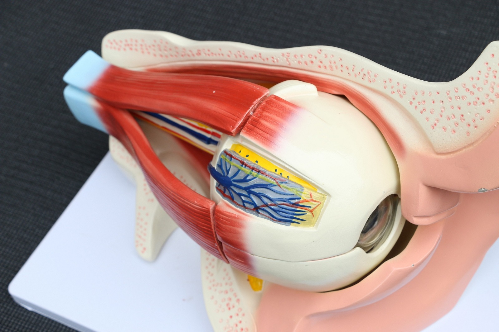 To enhance the learning process, the model which is four times larger than the actual human eye, can be taken apart. The eleven parts of the eye can be scrutinized individually and passed around the classroom for a hands-on learning experience.