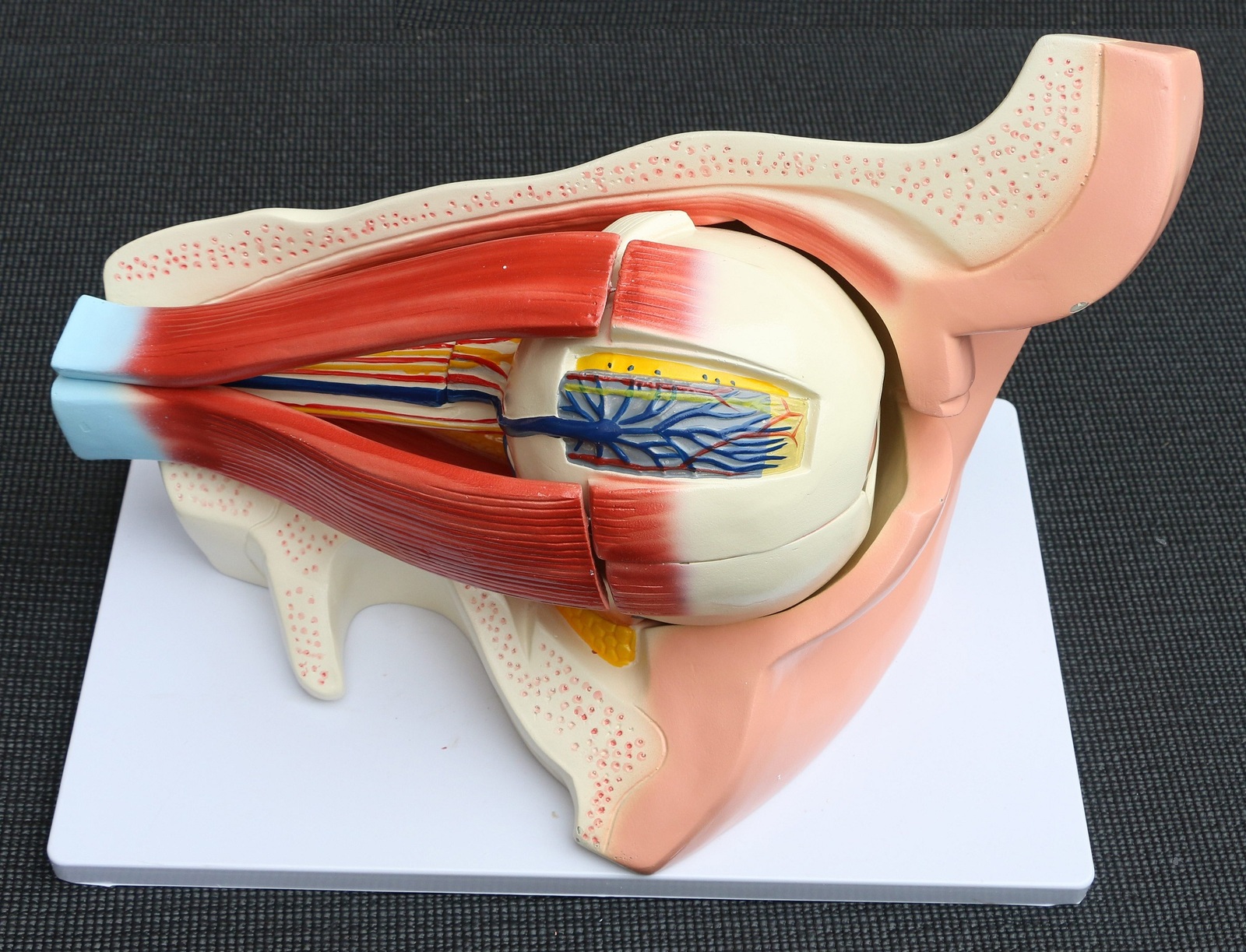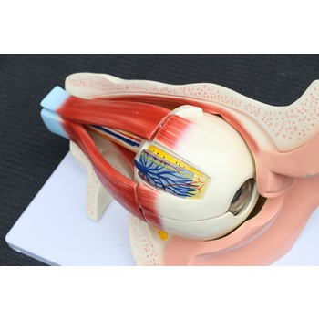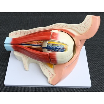 Educators and teachers will appreciate the value of this great visual aid. The model features an enlarged human eye with orbit and provides an accurate depiction of the eyeball’s internal structure and the muscles that surround it. The optic nerves and muscles are displayed in their natural positions within the bony orbit.