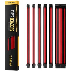 Antec Power Supply Sleeved Cable /24pin ATX /4+4pin EPS /8-pin PCI-E /6pin PCI-E PSU Extension Cable Kit 30cm Length with Combs, Red/Black Premium PET sleeve cables, included: (1) 24-pin ATX, (1) 4+4pin eps, (2) 8-Pin PCI-E, (2) 6-pin PCI-E; compatible with all power supplies 7 customized color combos to match with the color/rgb of the selected tower, gpu/cpu/ram, motherboard, case fan and cpu cooler 24 cable combs, easy cable management for routing M/B PCI-E cables and leaved no gap between individually sleeving cable wires Triple Layer Weaving design with 16AWG, 300mm, 100% heatshrink-free Warranty: 3 year