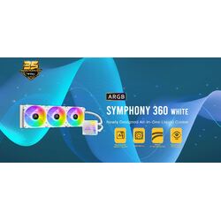 ANTEC SYMPHONY 360mm ARGB WHITE Advanced Liquid CPU Cooler, PWM LED Fan, PTFE Tubing, LGA 115x, 1200, 2011-v3, 2066, AM4, AM3+ FMx, TR4, 3 Yrs