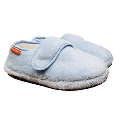 The Plus Slippers have an adjustable hook & loop closure at the front of the shoe. Ideal for narrow and wide feet or flexibility challenged wearers.