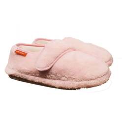 The Plus Slippers have an adjustable hook & loop closure at the front of the shoe. Ideal for narrow and wide feet or flexibility challenged wearers.