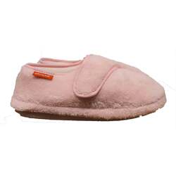 The Plus Slippers have an adjustable hook & loop closure at the front of the shoe. Ideal for narrow and wide feet or flexibility challenged wearers.