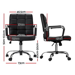 Bring a touch of contemporary living to your home or office interior with our Artiss Office Chair. Full of iconic styling, the office chair is sleek and elegant in every profile. Its faux leather upholstery is waterproof and offers sophistication and class. The seat is rotatable 360 degrees to face any direction with ease, while the soft padded seat and armrests keep you comfortable for longer. It is height adjustable with a mid-back design to allow you to be seated in your most comfortable position and posture. The hard plastic base has five castor wheels for ease of movement. Easy to assemble and easier to maintain, the Artiss Office Chair is perfect for any work environment from your home to the office.