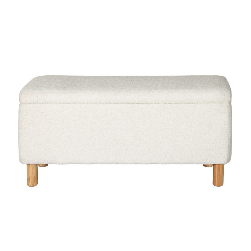 Artiss Storage Ottoman Blanket Box 99cm Teddy Fabric White