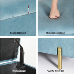 Add a luxury touch to your living room with an Artiss Velvet Storage Ottoman. It has an ultra-soft, high-resilience foam seat upholstered in quality blue velvet, set atop a sturdy wood frame with a 300kg weight capacity and robust hinges. Lift the seat to reveal a generous storage space for up to 60kg worth of blankets, pillows, toys and more. The bench is supported by premium golden metal legs topped with floor protectors to prevent scratches and dents. The whole piece is easy to assemble – just follow our simple step-by-step assembly manual. With an Artiss Velvet Storage Ottoman you can easily bring warmth, space and timeless style to any home.