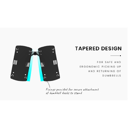 The perfect partner for your Ativafit 25kg, 32.5kg or 40kg adjustable dumbbells, this stand is constructed from tough tubular steel and can be rolled out and locked into position with ease. The dumbbell docks that are supplied with the dumbbells (sold separately) attach to the stand in a tapered angle to facilitate ergonomic picking up and unloading of dumbbells.