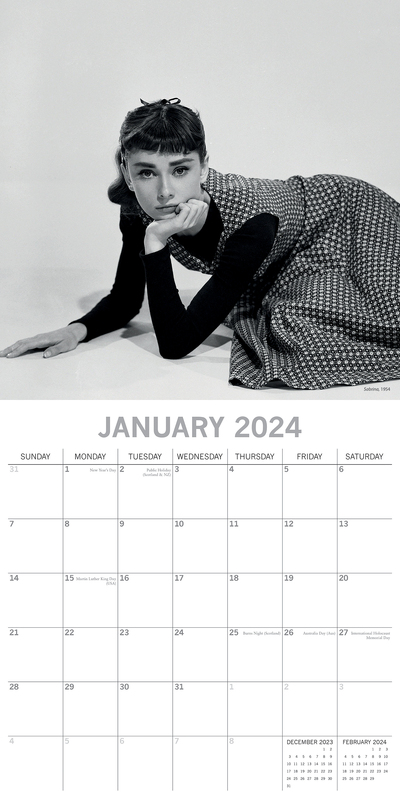 Audrey Hepburn - 2024 Square Wall Calendar 16 Months Planner Xmas New Year Gift