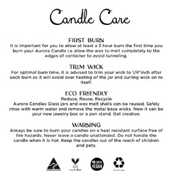 - Keep these care instructions handy and enjoy your Aurora candles and don't forget to come back and try more Aurora fragrances as we are continuously adding more all the time.