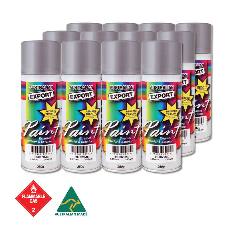 Australian Export 12PK 250gm Aerosol Spray Paint Cans [Colour: Chrome]