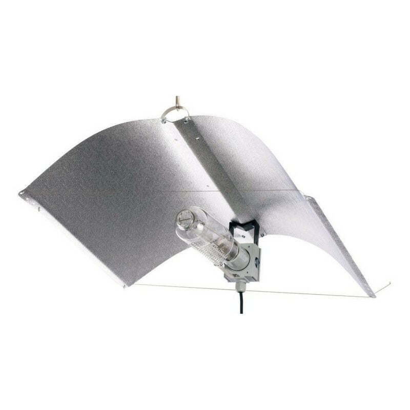 The Adjust-A Wings combines high-end technology, esthetics and maximum features in a light weight fitting. It comes with an adjustable double parabole for perfectly focused illumination and special coatings that provide an evenly diffused light. The Adjust-A-Wings Defender is made from highly durable H18 airplane aluminum which, in combination with its functional design, allows it to be mounted, disassembled, moved and stored quickly and without tools and without compromising the materials. In addition, its titanium white polymer coating is extremely heat-resistant. Compared to the Avenger that made from 95% reflective German dimple aluminum sheet, Defender has a slightly lower reflection but a better spread of light. This results, overall, in an even growth and yield.