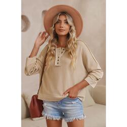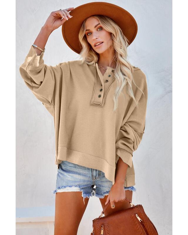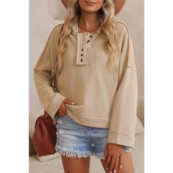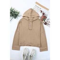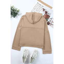 Azura Exchange Casual Khaki Hoodie with Patchwork Trim - S