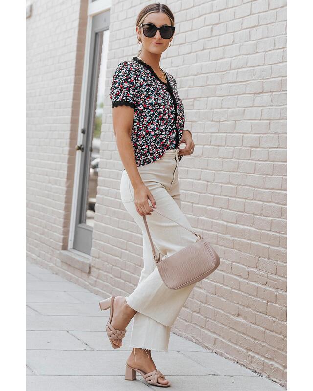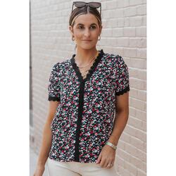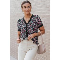 Azura Exchange Ditsy Floral Lace Trim Blouse - M