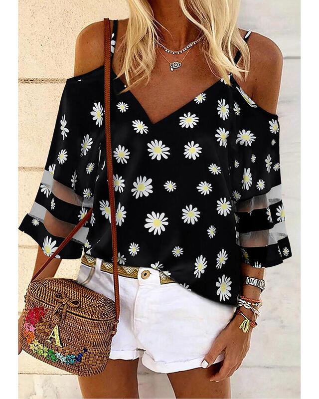 - Daisy Floral Cold Shoulder Blouse
