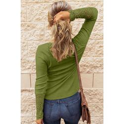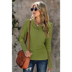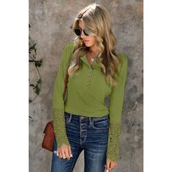 Azura Exchange Lace Hem Sleeve Button Top - XL