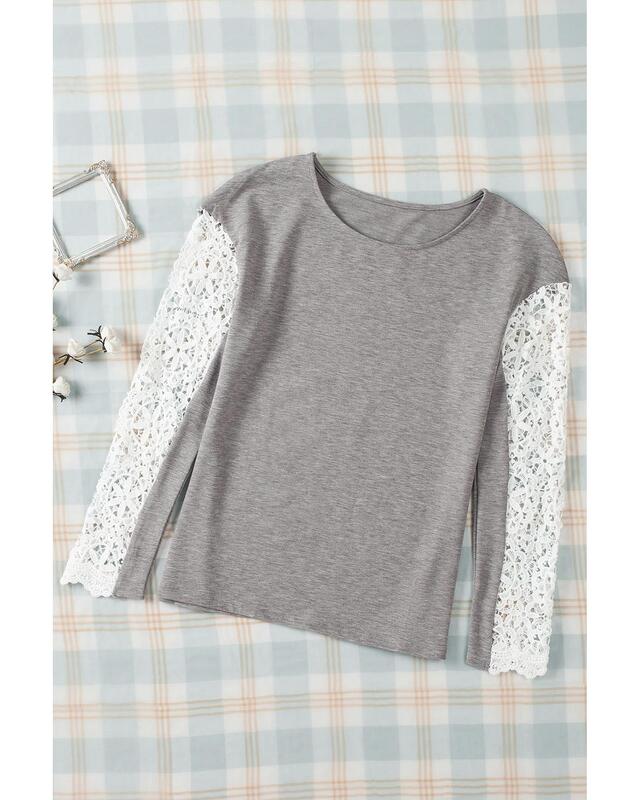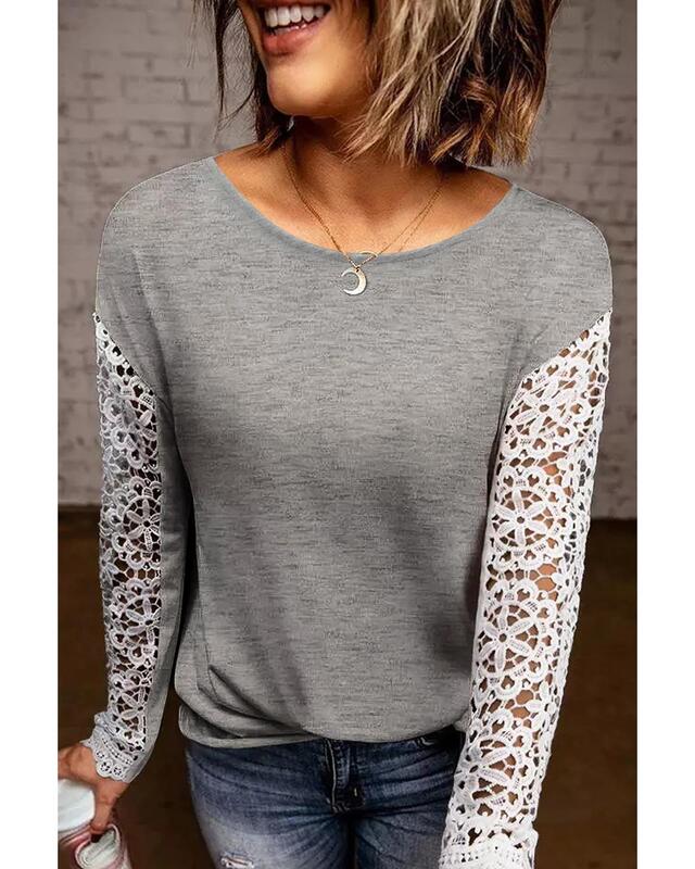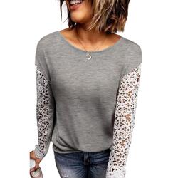 - Stylish and elegant Lace Splicing Long Sleeve Top