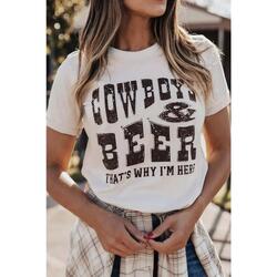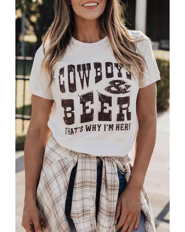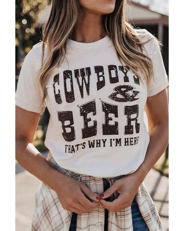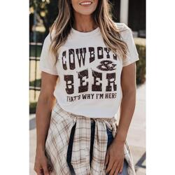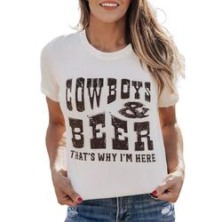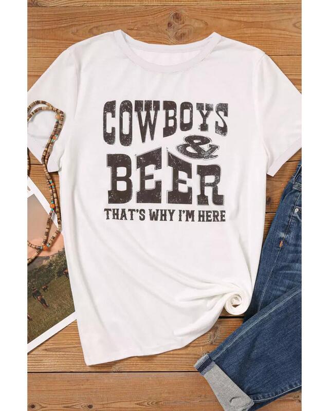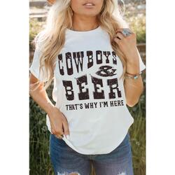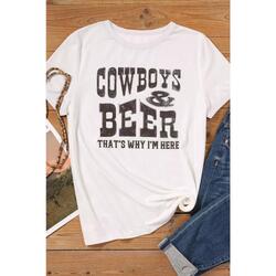 - Quality COW BOYS & BEERS Letters Graphic T-shirt