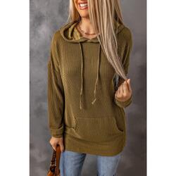Azura Exchange Ribbed Drawstring Hoodie with Kangaroo Pocket - M