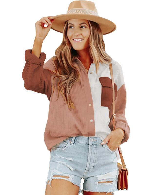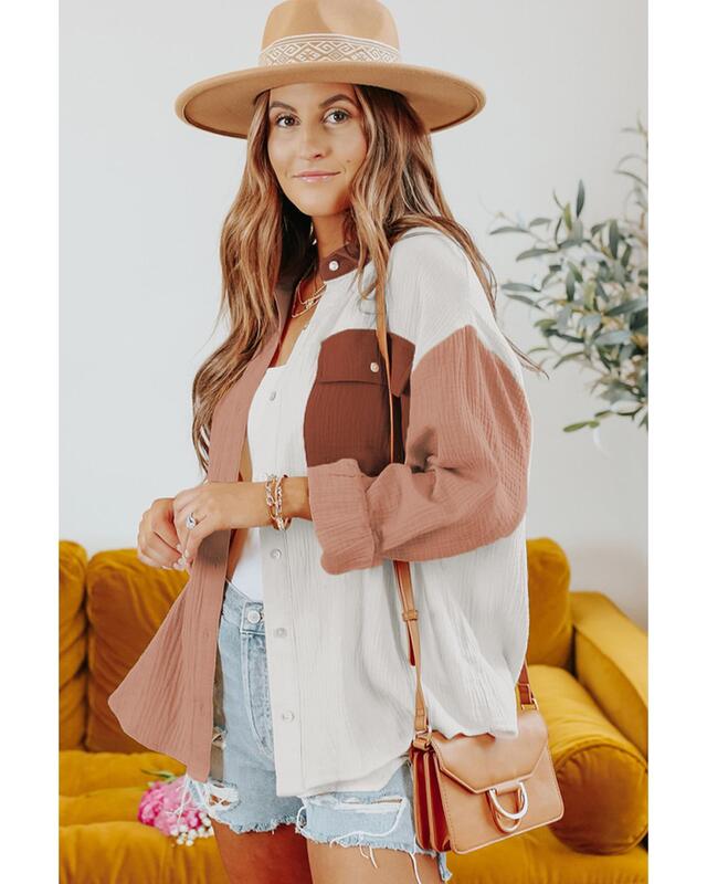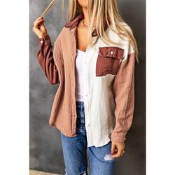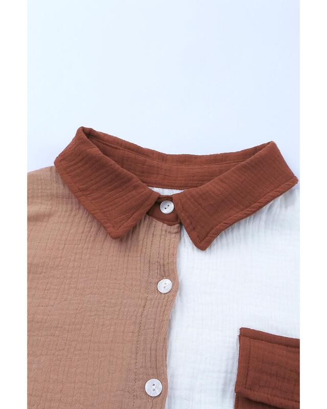Azura Exchange Textured Color Block Long Sleeve Shirt with Pocket - 2XL