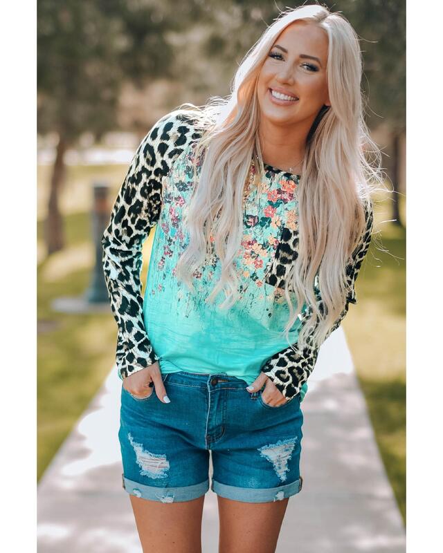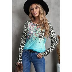 Azura Exchange Tie-dye Splicing Long Sleeve Top - M