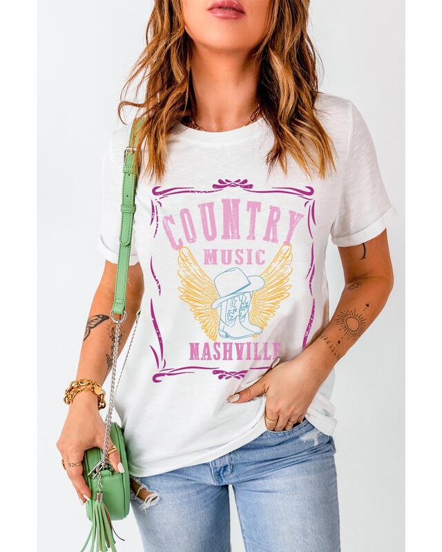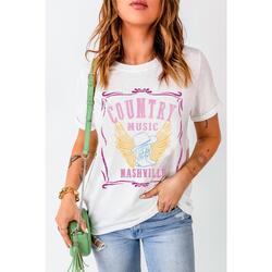 - Stylish COUNTRY MUSIC Boots Wings Print Graphic T Shirt