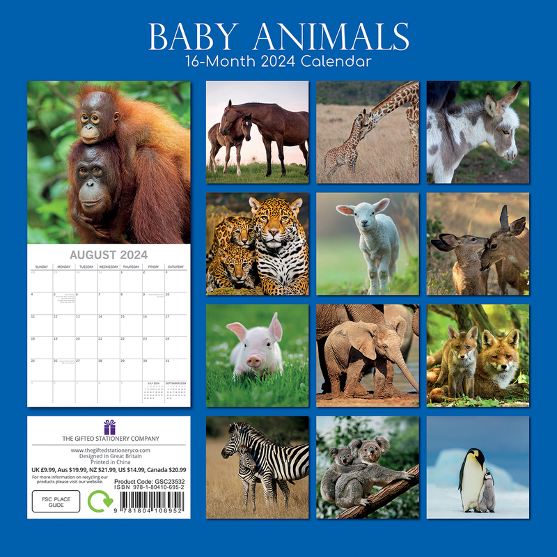 Baby Animals - 2024 Square Wall Calendar Pets Animals 16 Months Premium Planner