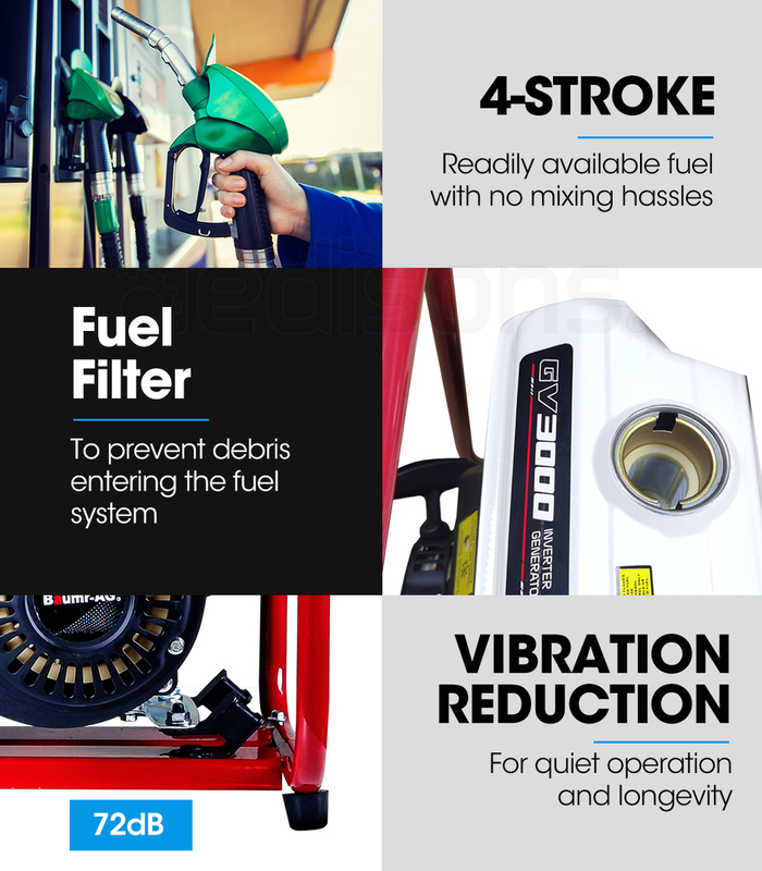 So whether you plan to enjoy home comforts on your next holiday, or if you need a generator on hand for work or power outages, the Baumr-AG GV3000 Open-Frame Inverter Generator is a workhorse you can rely on.