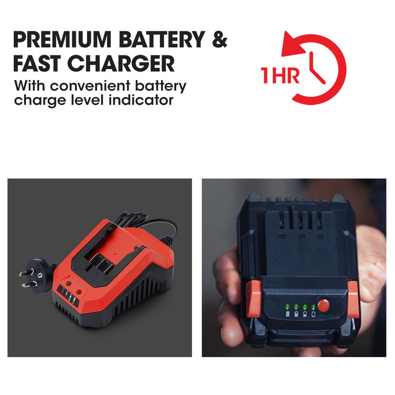For ultimate convenience, the 20V SYNC Series batteries are compatible with the wide range of Baumr-AG cordless electric garden and workshop power tools. The kit includes a battery and fast charger which enables you to be fully charged in just one hour!