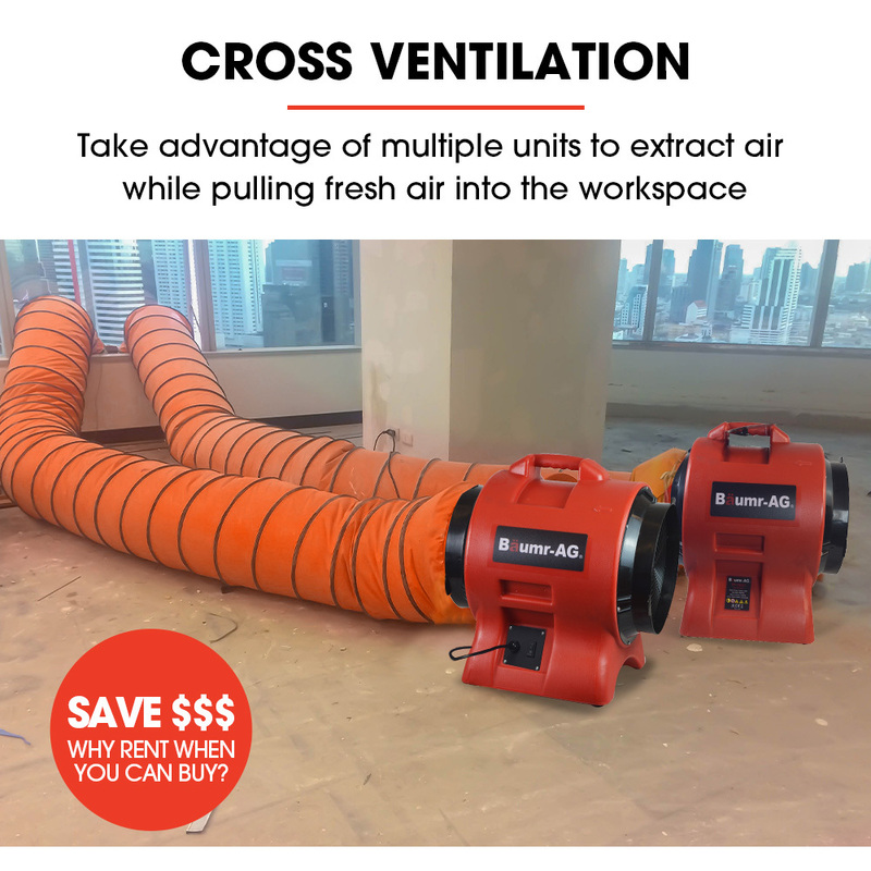 Baumr-AG 300mm (12 inch) Portable Axial Air Mover Blower Fan with 10m Ventilation Duct