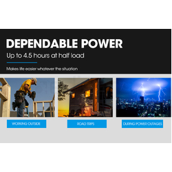 - Continuous Work Time: 4.5 hr (50% load) 2.5hr (100% load)