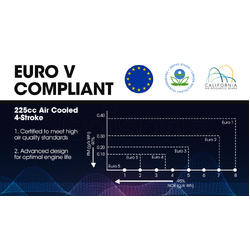The 225cc OHC four-stroke engine with 100% copper wire alternator is designed for reliability and longevity, and it should come as no surprise that it meets the strict Euro V emissions standards. It boasts a powerful 3500W peak power output, and can provide up to 4.5 hours continuous operation. For convenience, the GV7000 has a quick start guide on the unit.
