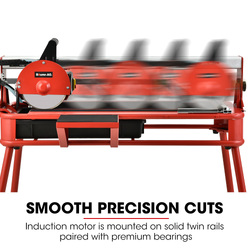 The Baumr-AG BTS210 Wet Cut Tile Saw is a rugged, full-featured tile saw that allows you to cut large format tiles with minimal effort and better results. At the heart of the BTS210 is a powerful 800W motor mounted on a steel U-beam with a quad ball-bearing carriage for smooth and accurate cutting.