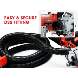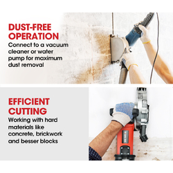 For wet-cutting the water pipe and supplied electric pump can draw water from a bucket, or can be connected to a hose.