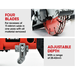 Unlike traditional models with just two blades, Baumr-AG Wall Chasers ensure that any breakout is a quick and easy step. The blades themselves are quick to change, and channels between 25-44mm are possible with different combinations of the blades and spacers.