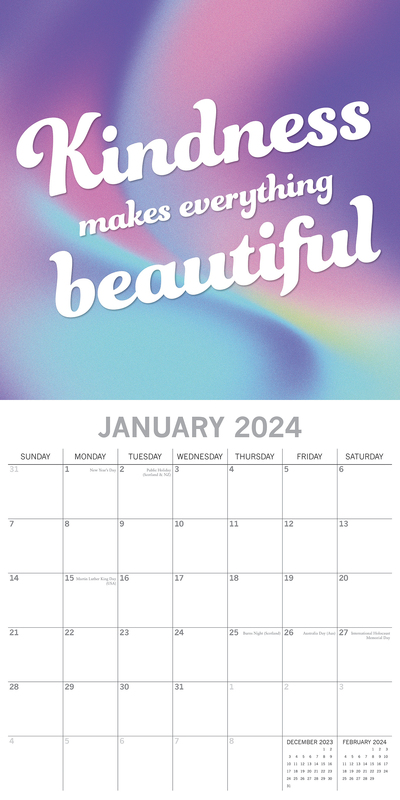 Be Kind - 2024 Square Wall Calendar 16 Months Lifestyle Planner New Year Gift
