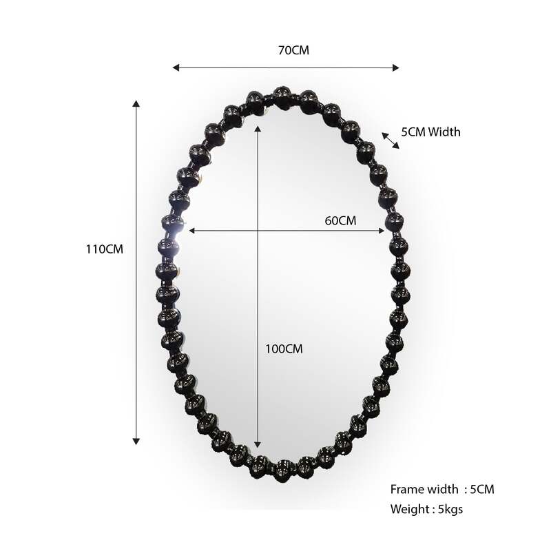 Beaded oval Mirror - Gloss Black 70cm x 110cm110cm