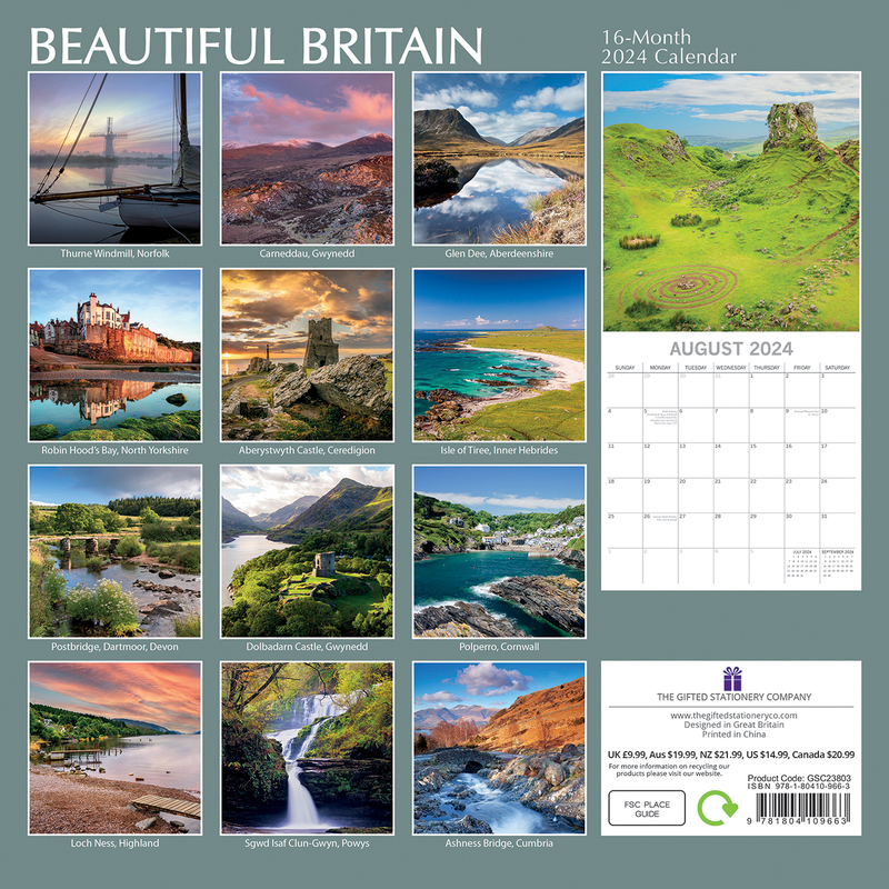 Beautiful Britain - 2024 Square Wall Calendar 16 Months Planner New Year Gift