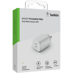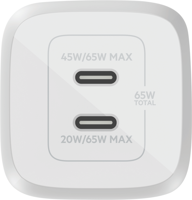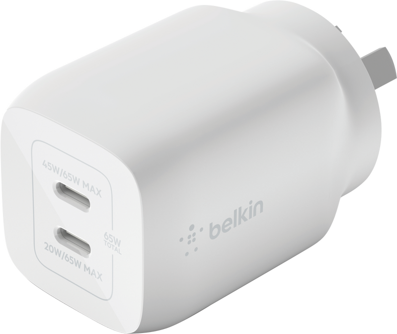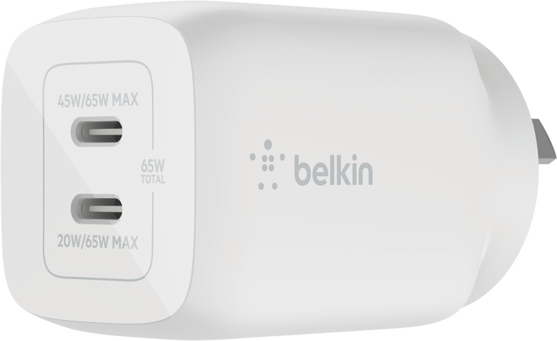 Belkin Dual USB-C GaN Wall Charger with PPS 65W WCH013AUWH