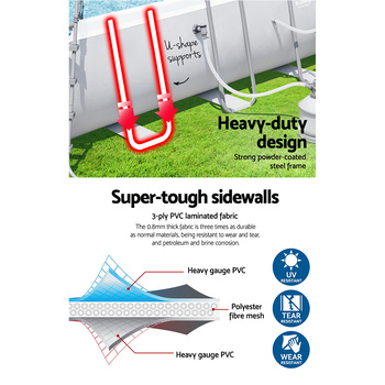 We are sure you will be having great fun in the pool. And it is important to keep the water clean too. Well, it is good to know that the pool comes with a sand filter pump with a high-volume flow rate of 5678 litres per hour to ensure the water remains crystal clear for all your wet and wild antics.
