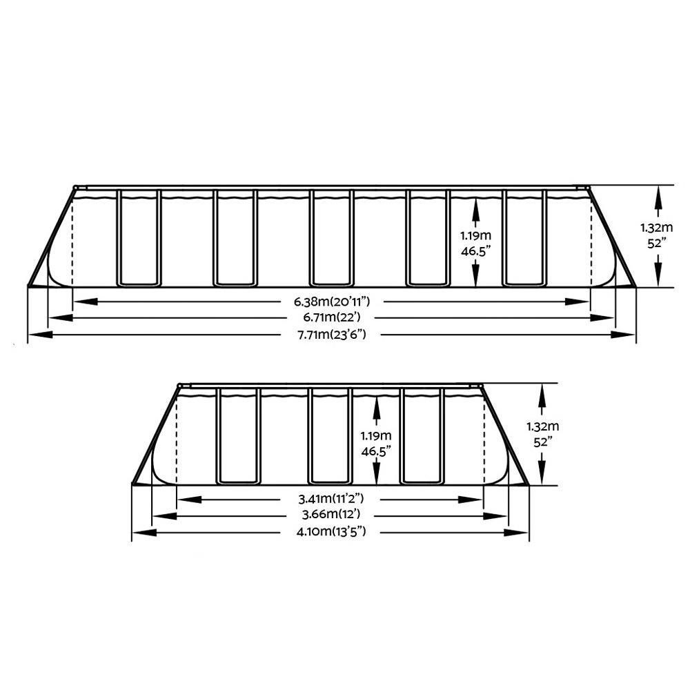 This 6.71m x 3.66m x 1.32m pool can hold a water capacity of up to 26,845 litres. Suffice to say, that is a pretty big swimming pool in your backyard. ??ll the better!??we can hear you say. Better still, the pool is designed with heavy-duty PVC and polyester 3-ply side walls and reinforced with rope wraps around the bottom of the pool to keep the legs firmly in place. The connectors and frame of the pool are all made with rust-resistant elements to ensure that your pool stands tall and durable in all weather conditions. A couple of deck chairs, side tables and a nice canopy shade would certainly help to complete this wondrous sight.