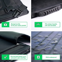 - Portable and Folding Kickstands: BigBlue 100W solar panels charger can be folded into a briefcase and with a TPE rubber handle, easy to carry. Designed with the kickstands to mount the solar panel at an angle for maximizing output energy efficiency. It is made from durable cloth, zipper and PET material, is water-resistant and ideal for outdoor activities such as camping, climbing, hiking, picnic etc.