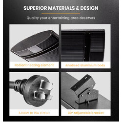 - 1x 3200W BIO Electric Radiant Strip Heater