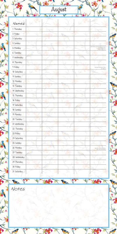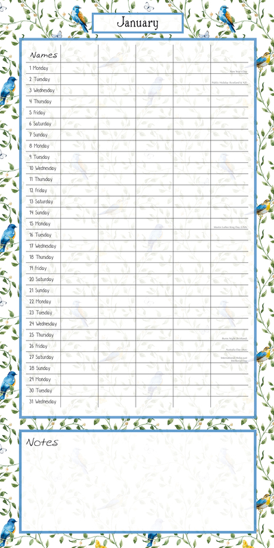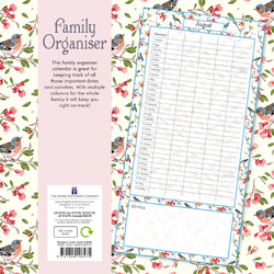 Birdsong Family Organiser - 2024 Square Wall Calendar 16 Months School Planner