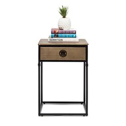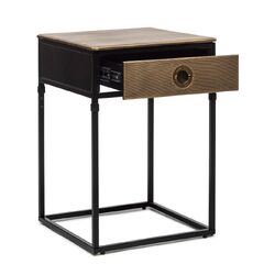 Black Bedside Table with Storage Drawer and Gold Finished Textured Top